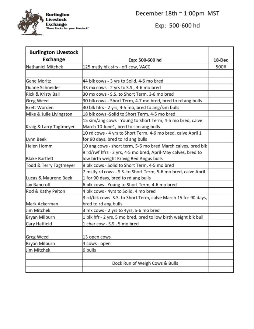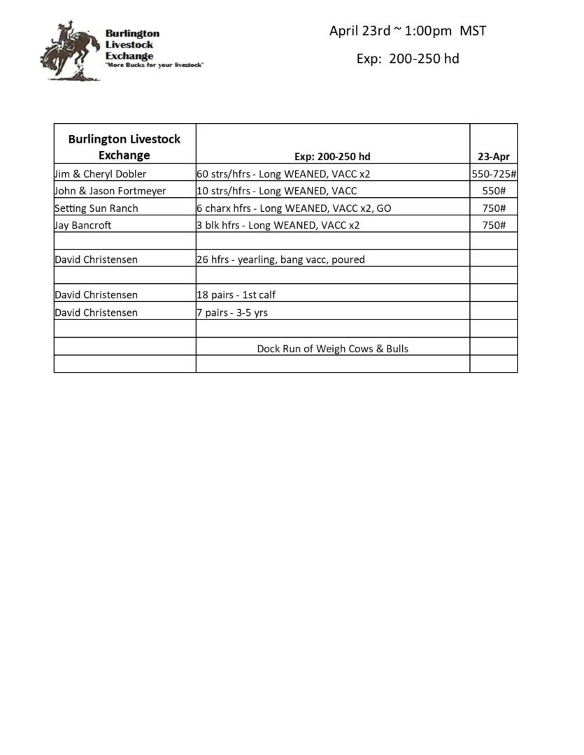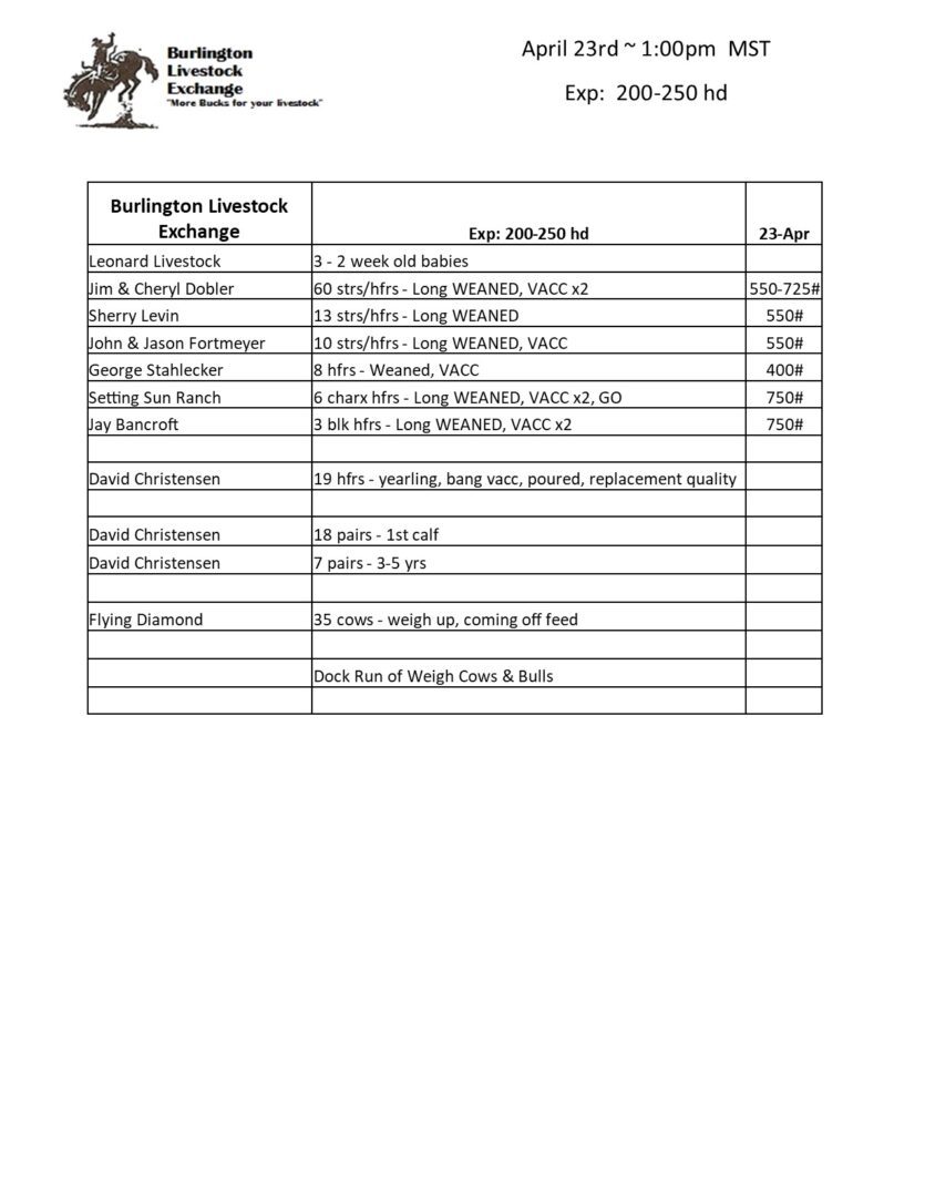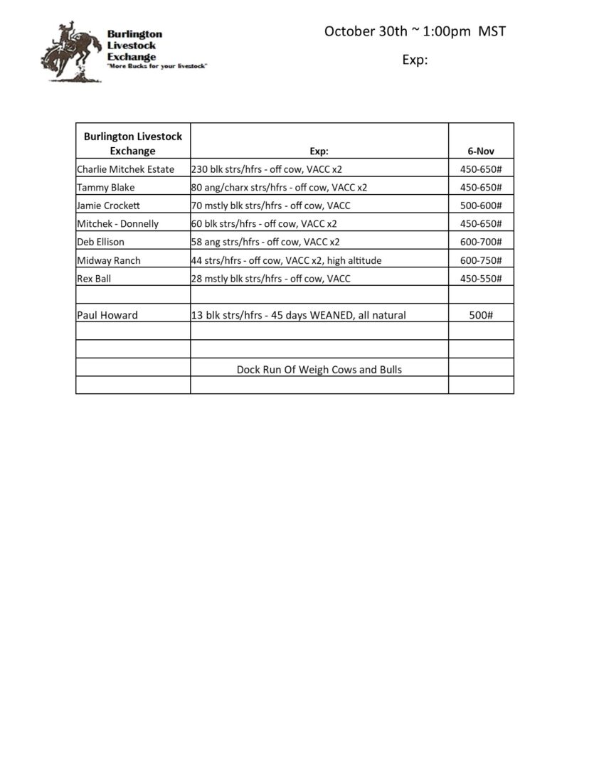 BURLINGTON LIVESTOCK EXCHANGE